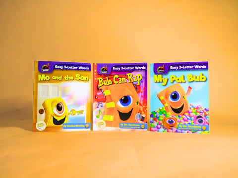 A collection of books that use easy 1, 2, and 3-letter words to enhance reading ability, sight words, vocabulary and more